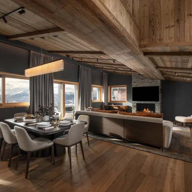 The Terrace Rooms and Suites enjoy a slope-side position with balconies facing the final turn of the Chetzeron piste: the only sounds are the chuckle of a stream and occasional swoosh of a ski.