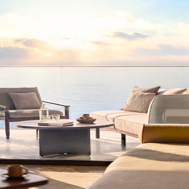 The resort’s 61 suites reflect the colors and textures of the Gulf, with soft tones, natural materials, and generous terraces that frame the water or skyline. Thoughtful comforts, sensory amenities and intuitive service create a space where guests can slow down and settle in with ease.
