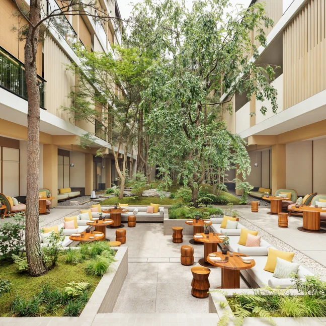 Sekki テラスはホテルの中庭に位置し、禅にインスピレーションを受けた落ち着きの空間です。カフェとレストランに隣接し、心地よい気候の季節にはブレークアウトセッションやカクテルパーティーにご利用いただけます。