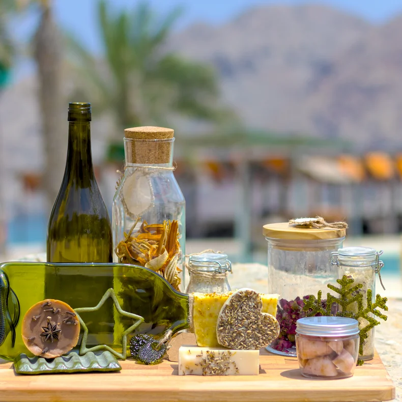 Os nossos hóspedes são incrivelmente criativos no que diz respeito ao upcycling (reaproveitamento). Desde triturar vidro e criar belos objetos de decoração ou tábuas de cortar queijo até utilizar sobras de materiais de uma remodelação para construir móveis novos. A maioria dos estabelecimentos também recolhe velas usadas para as derreter e criar novas velas. Acreditamos verdadeiramente na filosofia do desperdício zero.