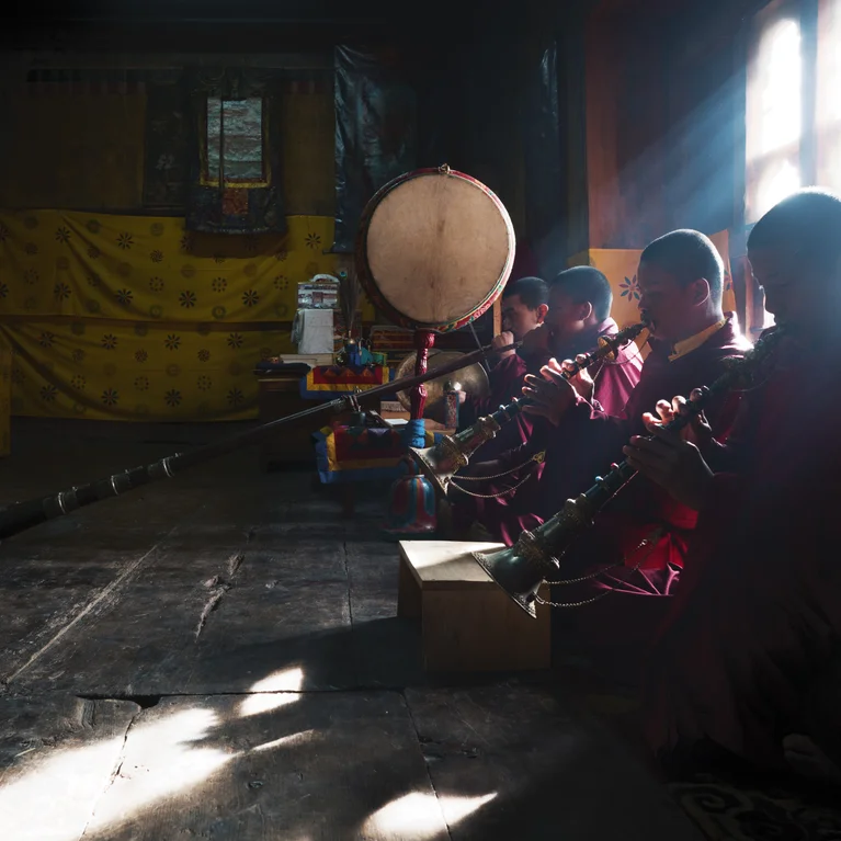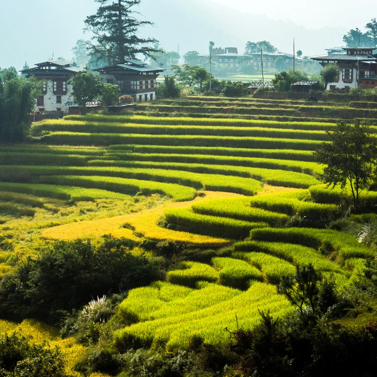 佛教寺院和寺廟內的古代壁畫和雕刻描繪了不丹充滿活力的受保護森林和豐富的自然風光。從翠綠的稻田成蔭的低谷到原始的白雪皚皚的山峰,除了偶爾有雪人之外,沒有人攀登過,這一切都體現了對人類和地球和諧福祉的堅定關注。我們也深感有義務關懷我們的環境、自然資源和社區,並維護和保護世界上唯一的負碳國家。